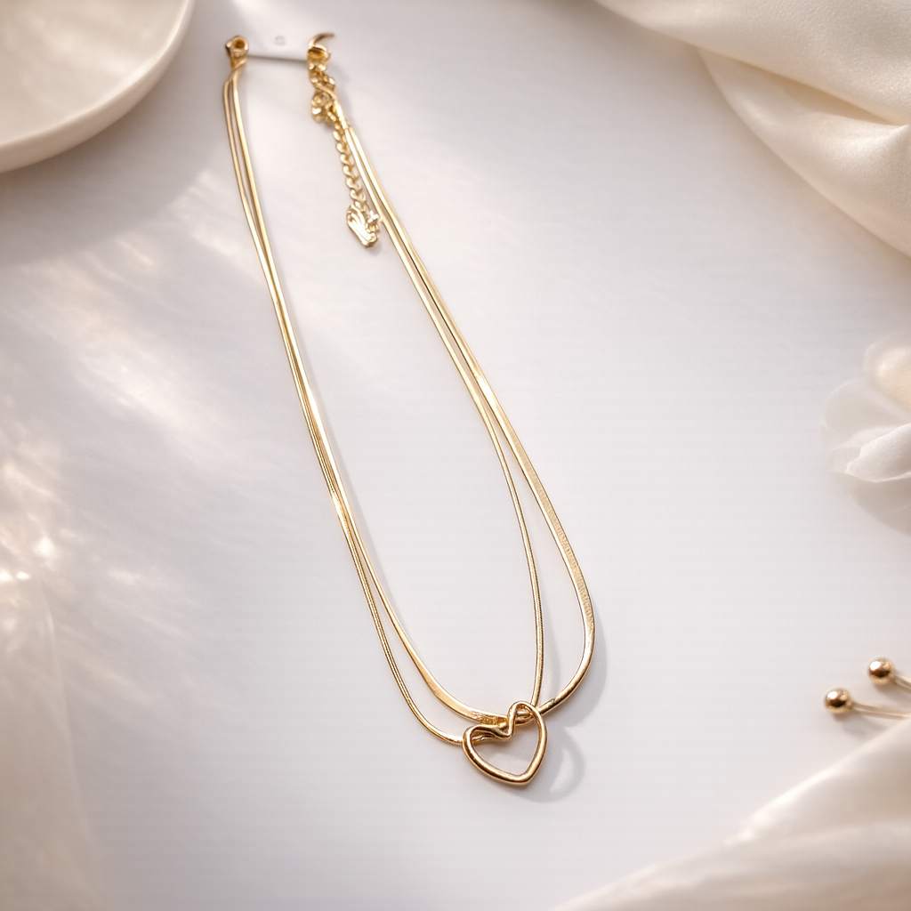 Elegant gold-tone double-layer necklace crafted from premium stainless steel, featuring a minimal heart pendant for a delicate and timeless look.