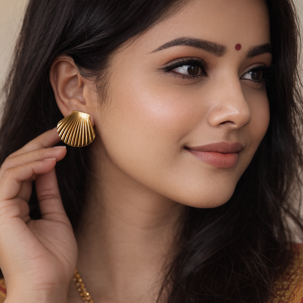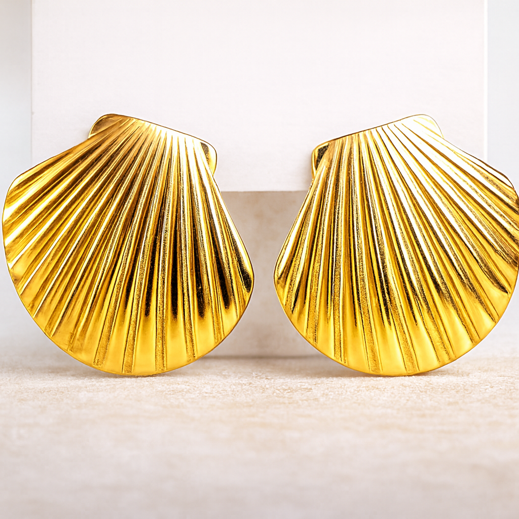 Add a touch of timeless elegance to your look with these beautifully crafted shell-inspired earrings, made from high-quality stainless steel with a rich gold finish. Designed with fine ridged detailing, these earrings reflect light gracefully, giving them a luxurious and polished appearance.